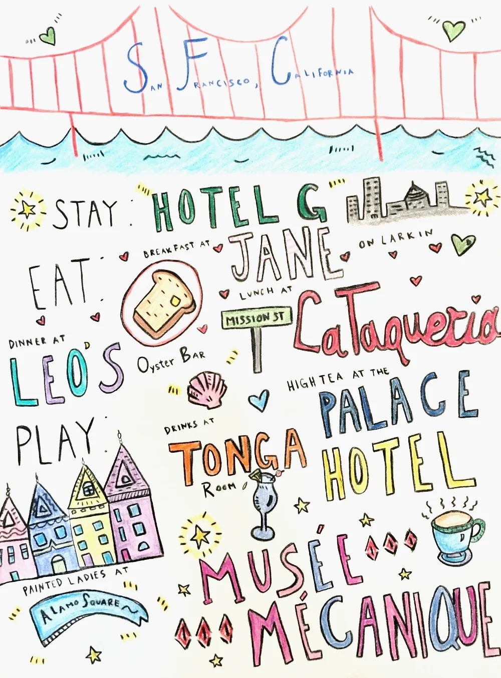 Breakfast at Jane on Larkin, I'm a coffee n toast kind of gal for breakfast, and boy does this place have toast, Avocado Mash and Nutty Bird are go to's. Also, you need to get the juice there, they come in reusable glass jars - sweet and green is my favorite, it's all in the name.